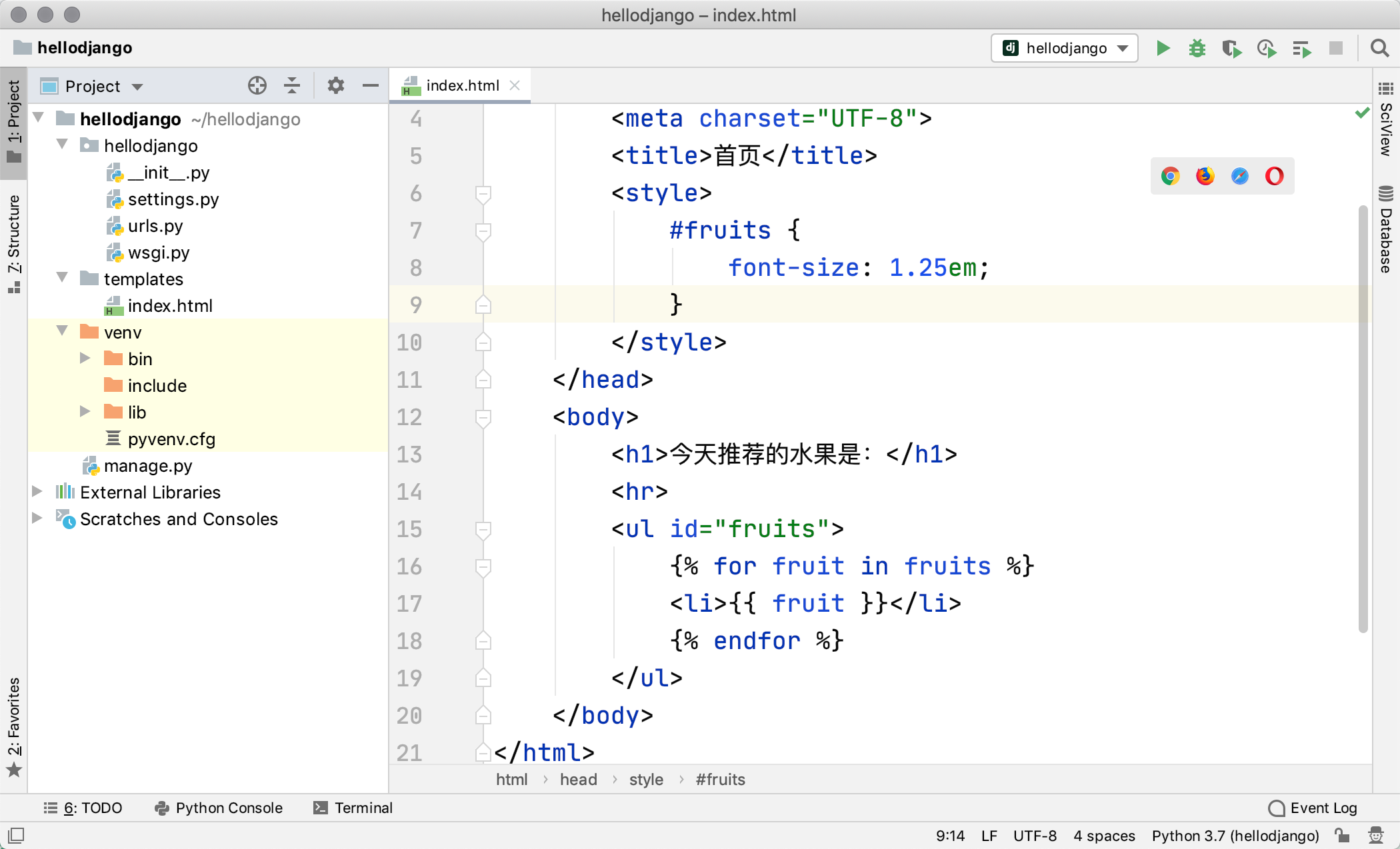 • hellodjango/settings.py:Django项目的配置文件。