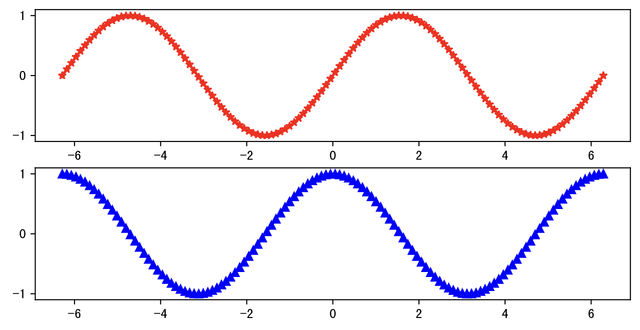 如果要使用两个坐标系分别绘制正弦和余弦,可以用上面提到的subplot函数来创建坐标系,然后再绘图。